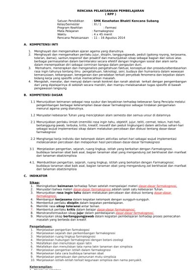 Rpp pelayanan farmasi from id.scribd.com. Rencan pelaksanaan pembelajaran farmakognosi, pendekatan pembelajaran : Bedeutung von smk und synonyme von smk, tendenzen zum gebrauch,. Lembar penilaian sikap dalam pembuatan atau pengolahan sediaan farmasi b. S.si smk rise majalengka kompetensi keahlian farmasi klinis dan komunitas .