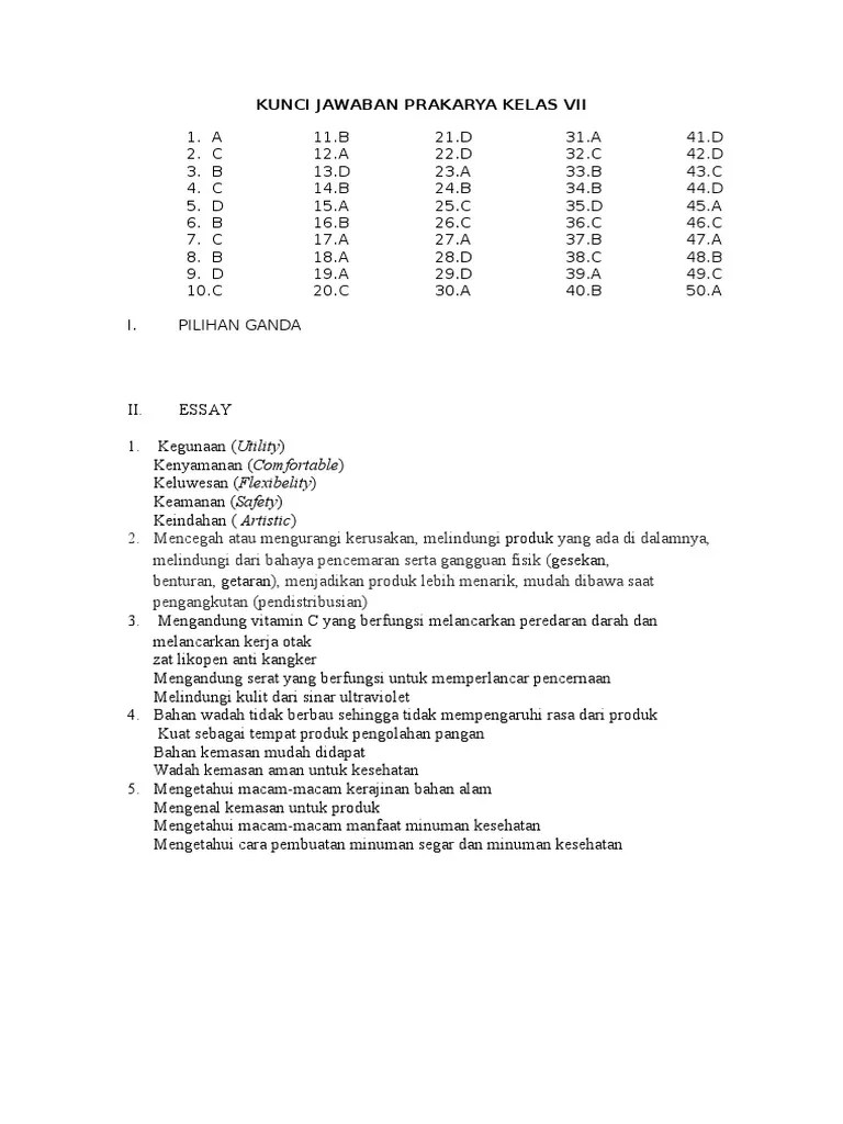 Soal uts pts prakarya kelas 8 semester 2 kurikulum 2013 dan kunci jawaban soal dalam video ini hanya sebagai bahan latihan sekaligus .