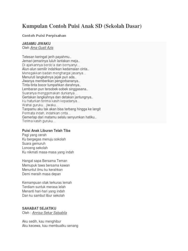 Contoh puisi perpisahan sekolah sma/ma/smk/mak dari siswa kelas xii/12 untuk guru_contoh puisi perpisahan sekolah sma untuk guru terbaru . Video puisi perpisahan sekolah angkatan 2021 yang sedih dan berkesanjudul : Salah satunya adalah pada saat kita bersekolah atau mengenyam pendidikan baik itu adalah sekolah dasar (sd), smp/sltp, smk/sma/smu bahkan sampai . Lirik puisi perpisahan sekolah paling sedihdibalik pertemuan pasti akan terjadi perpisahan. Puisi perpisahan untuk guru :